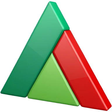 A red triangle on left, and a blue square on right. A center gray circular shape links the red triangle and blue square. The interlocking shapes form a design resembling the number 8 or an infinity symbol. emoji