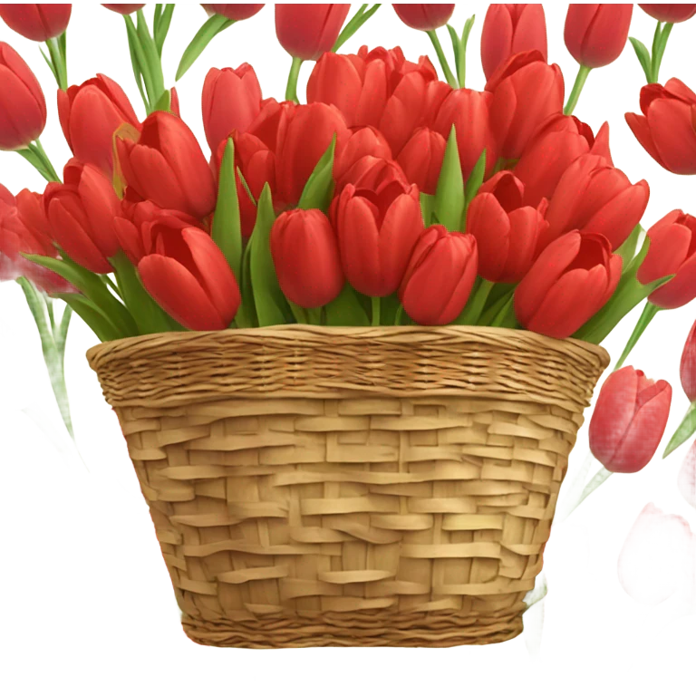 Red tulips bouquet in basket the same as the white ones you gave me without the bow. Tulips only in basket emoji | AI Emoji Generator