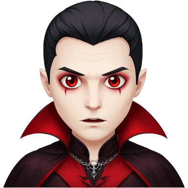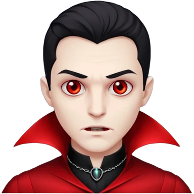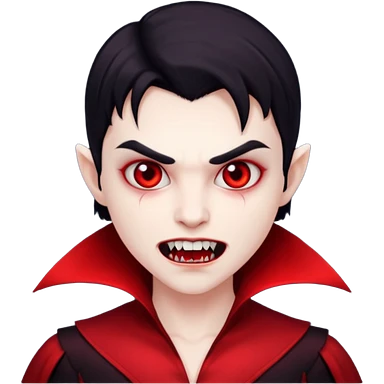 red vampire with gfangs and with red outfit emoji | AI Emoji Generator