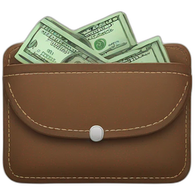 light beige wallet with dark green dollar bills sticking out, minimalist, emoji style emoji
