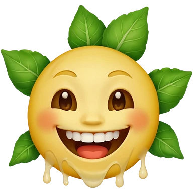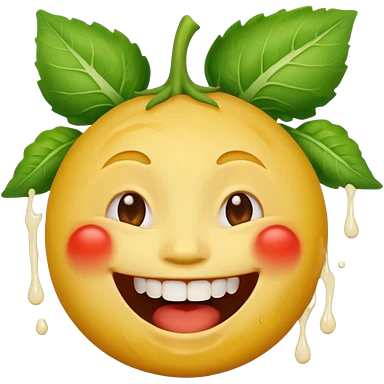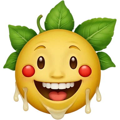 yellow face emoji laughing with vegetable leaf stuck on teeth stain emoji