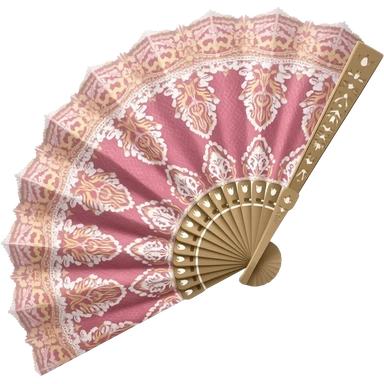 Reddish-pinkish and gold and white rococo pale pink fan with lace emoji