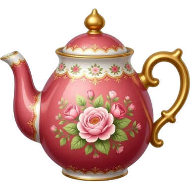 Reddish-pinkish and gold and white warm-colored romantic vintage fancy tea pot emoji