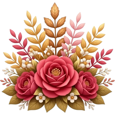 Reddish-pinkish and gold and white romantic vintage aesthetic floral decoration emoji