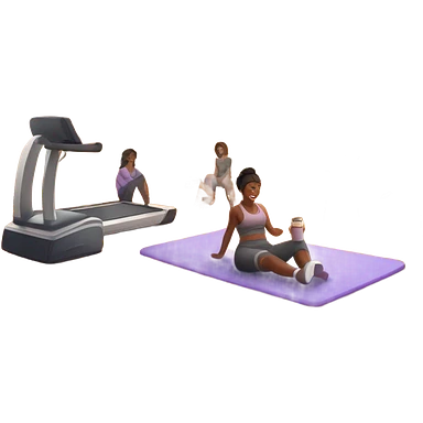 Blonde fitness trainer with curly hair and pink outfit emoji
