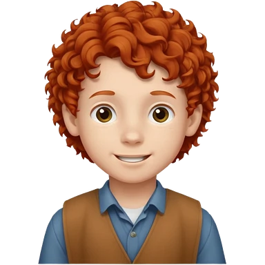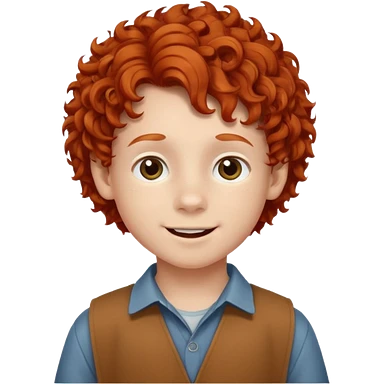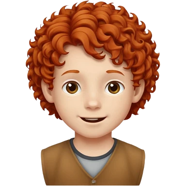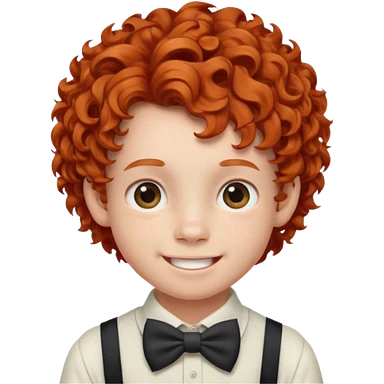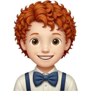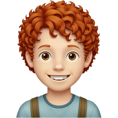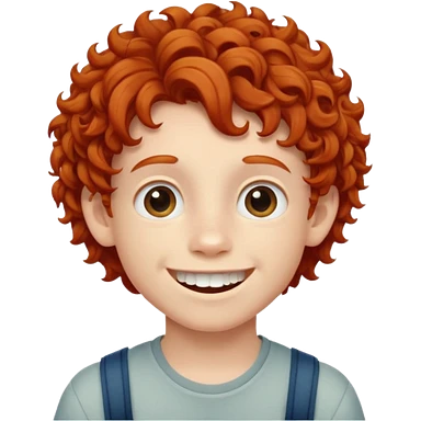 redhead kid with unique face features and very curly hair kid boy happy and braced emoji