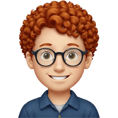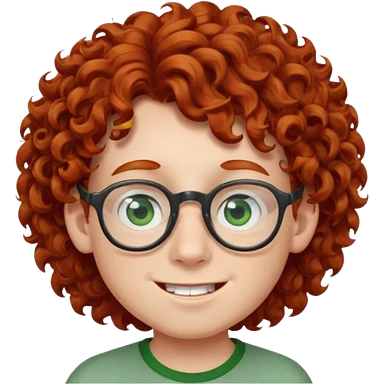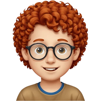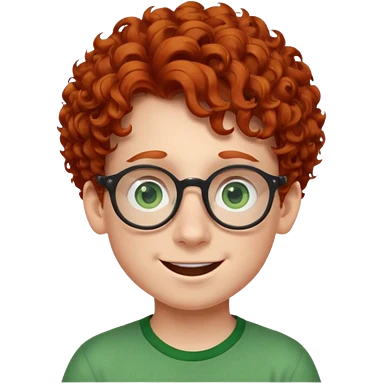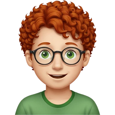 redhead kid with unique face features and very curly hair kid boy happy and big glassess and big nose and very green eyes emoji