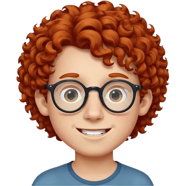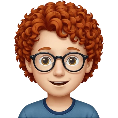 redhead kid with unique face features and very curly hair kid boy happy and big glassess and big nose emoji