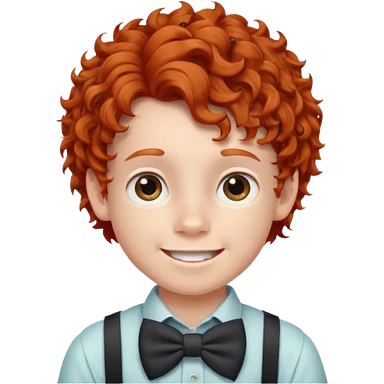 redhead kid with unique face features and very curly hair kid boy happy and braces on teeth emoji | AI Emoji Generator