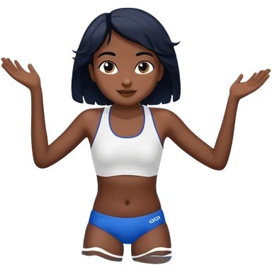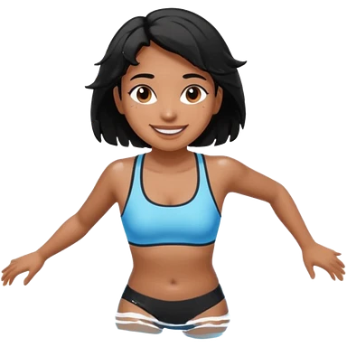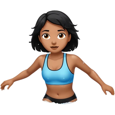 A girl swimming in Goan ocean. Girl should have black hair, clothes should be shorts and tank top or sports bra because she is indian emoji