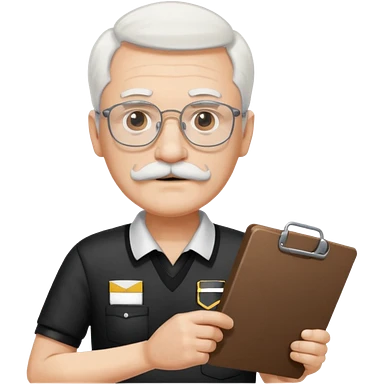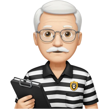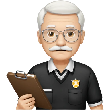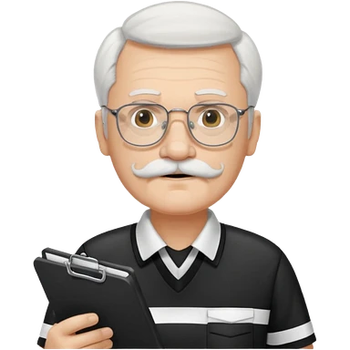 An old stern white hair and mustache, wear glasses referee with a clipboard, monitoring players closely. emoji