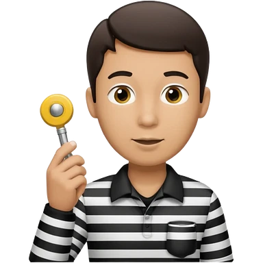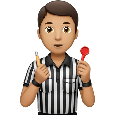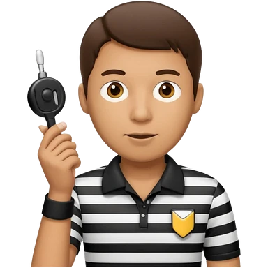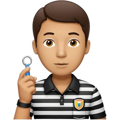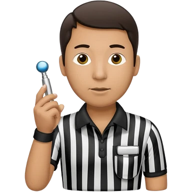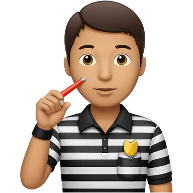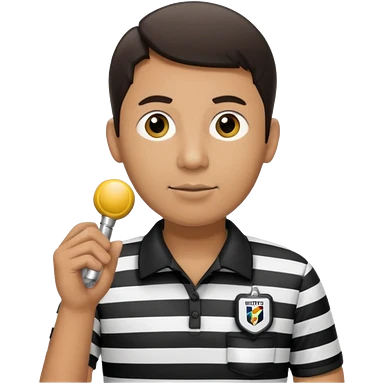 refree long hair and a beard but no moustache and wears a vertically striped t-shirt. emoji