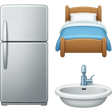 Refrigerator, bed, and sink emoji