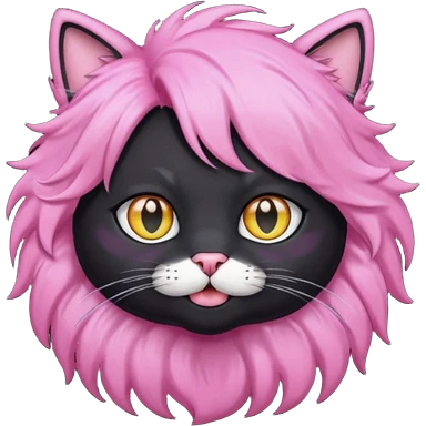 regal cat wearing a crown and elegant dress, long black wig emoji
