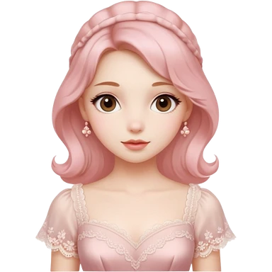 Woman with long flowing auburn hair wearing a pastel flower crown with pale pastel pink peonies and cream colored roses and butterflies in it emoji