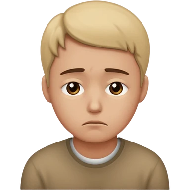 Un emoji avec un sweat à capuche gris, des yeux grands et inquiets, et une bouche tombante, exprimant tristesse ou regret. emoji