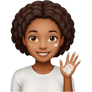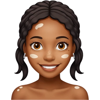 emoji of a black girl with vitiligo.she should have a lot of hair and vitiligo patches emoji