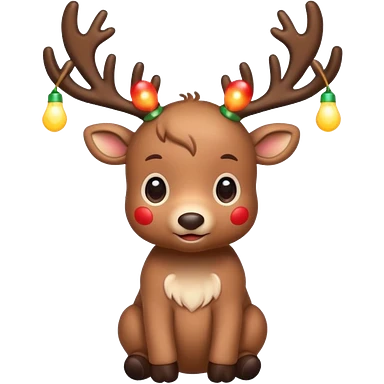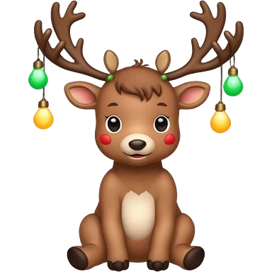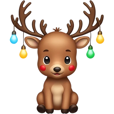 reindeer baby cute, full body LIGHTS on his horns emoji