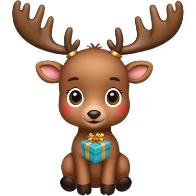 reindeer baby cute, full body , gifts stuck in horns emoji