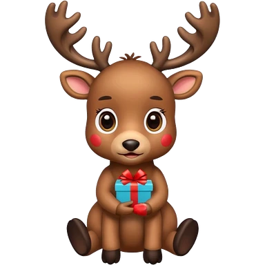 reindeer baby cute, full body , gifts stuck in head emoji
