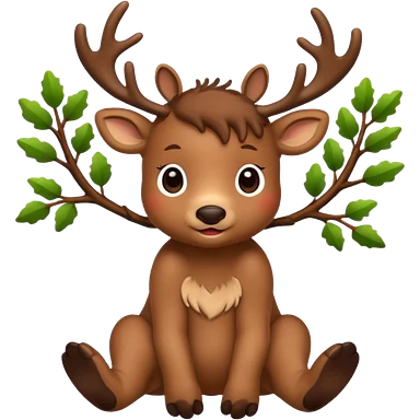 reindeer baby cute, full body , branches stuck in head emoji