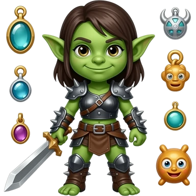 Green skin Goblin fighter girl with shiny trinkets toys emoji