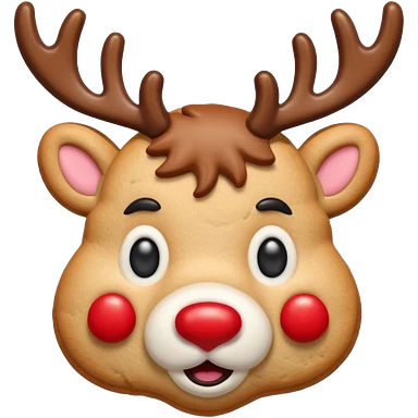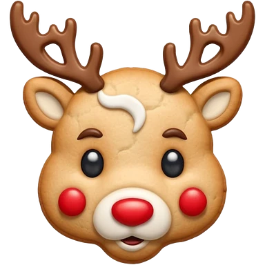 reindeer head shape cookie, no eyes, only have red nose on face emoji