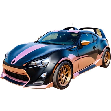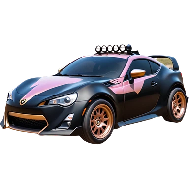 Relaxed adult 60’s Batgirl’s crime fighting themed Satin black and rose gold painted Scion FR-S pursuit vehicle hot rod off road capable emoji