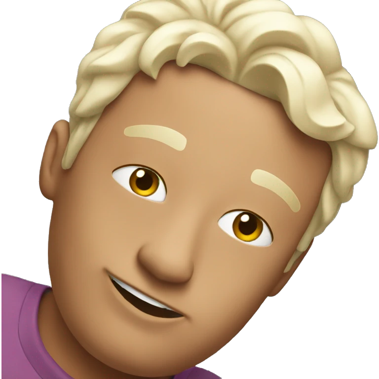 girl with light brown hair and white bangs curtain and blue eyes relaxes emoji