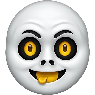 Um emoji estilo iOS do Ghostface, com sua icônica máscara branca e olhos e boca pretos, mas com um sorriso feliz. Ele usa um capuz preto e a forma geral do emoji deve ser arredondada e simplificada, semelhante a outros emojis do iOS. O fundo é transparente. emoji