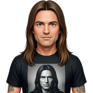 Bruce Dickinson pelo lacio largo remera eddie emoji