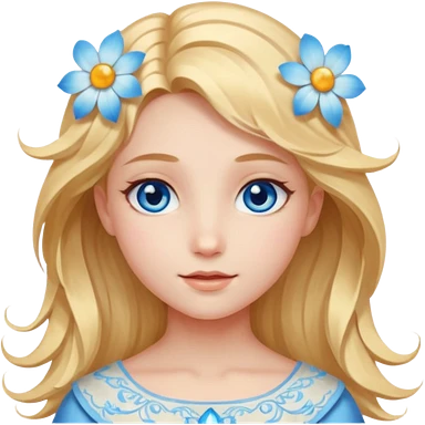 Chica abriéndosele el pelo como una flor, con cara de ángel radiante, ojos azules emoji