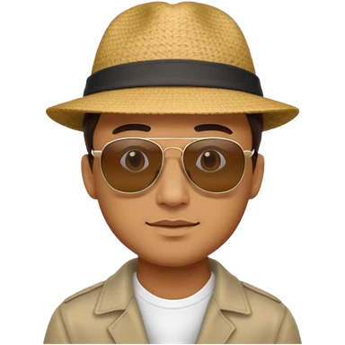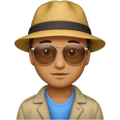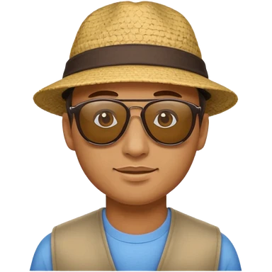 bearded man outdoors in collared-shirt, remove sunglasses. emoji