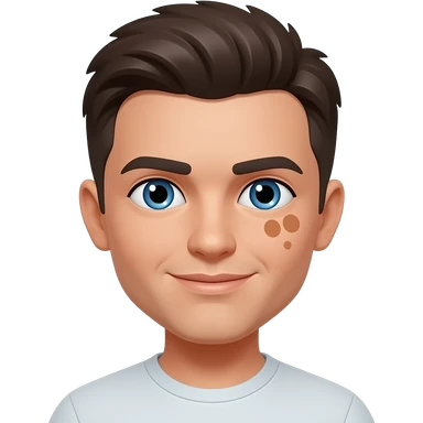 Remove brown spot from left side of face and make one of his eyes blue emoji