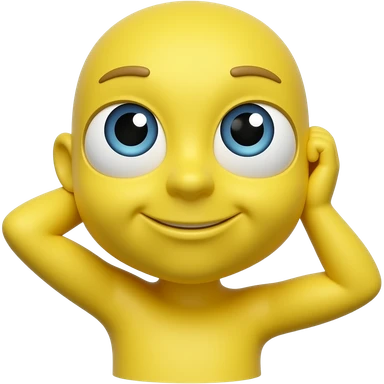 Create the emoji like whatsapp only yellow face.🥺🫲. Remove the mouth and eyebrows and add a soft guilty smile. Cute eyes looking upward and hand behind the back of head emoji