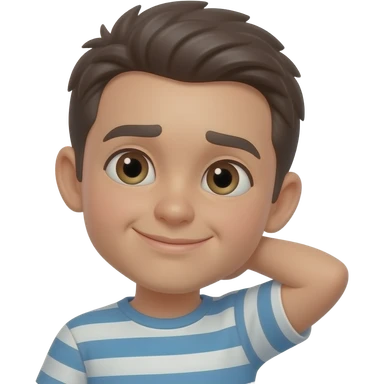 🥺🫲. Remove the mouth and eyebrows and add a soft guilty smile. Cute eyes looking upward and hand behind the back of head emoji