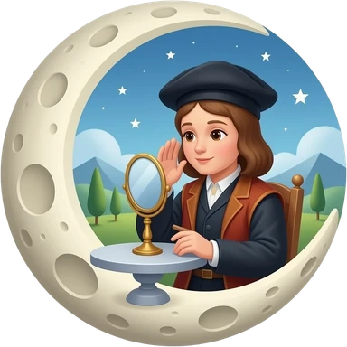 Renaissance pof someone smellint mirror on moon in a dream room the other table though a rolled moon room up emoji