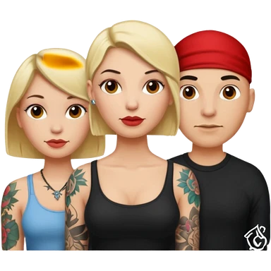 throuple blonde female brunette female with tattoed bald male emoji