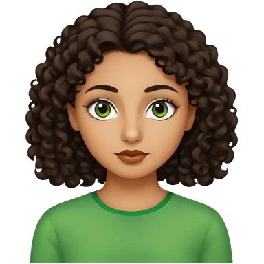 Create a zombie emoji inspired by a young woman with tanned skin, an oval face, large dark eyes, defined eyebrows, a small nose, and medium lips. Her hair should be long, curly, and dark brown. make a green skin like a zumbie original emoji emoji