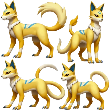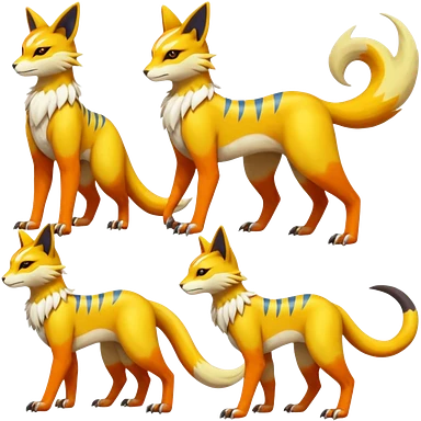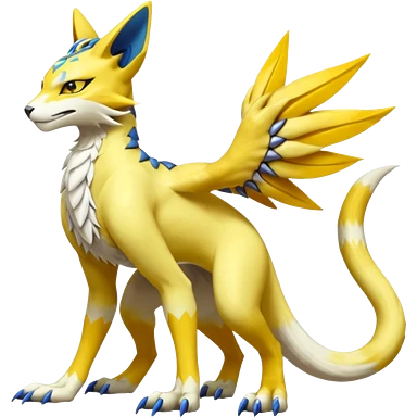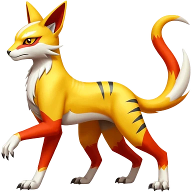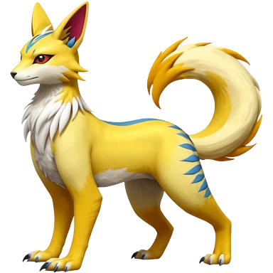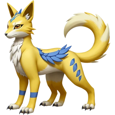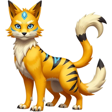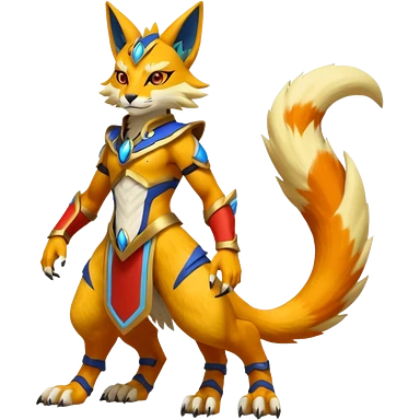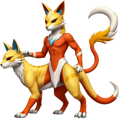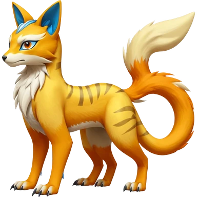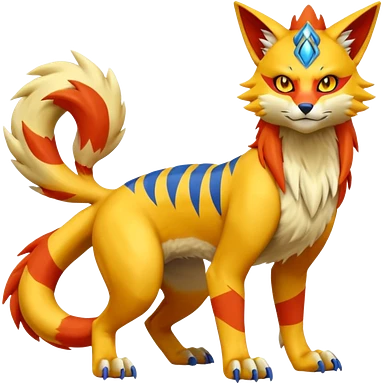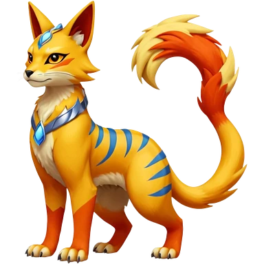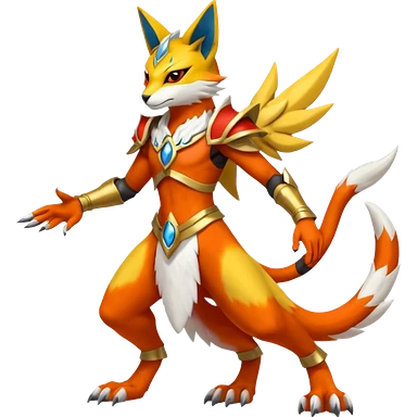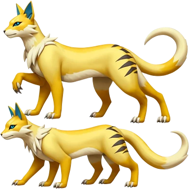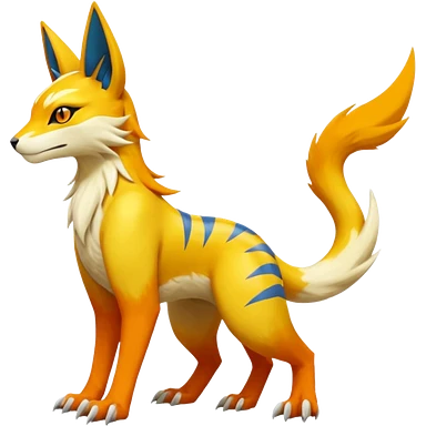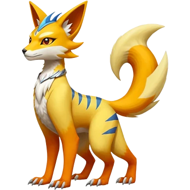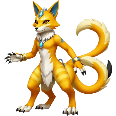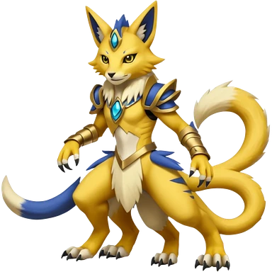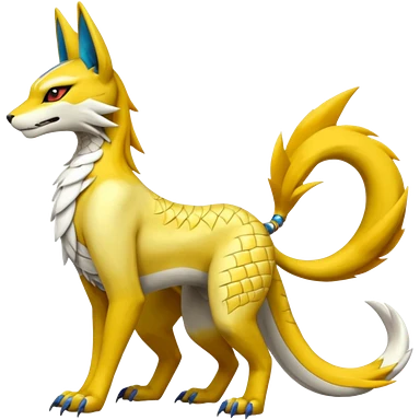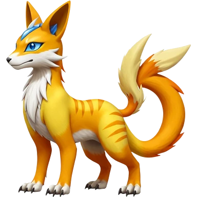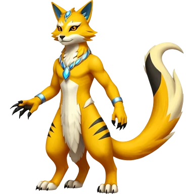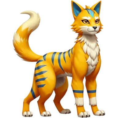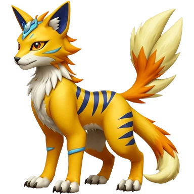 Vernid-Lombax-Koraidon-Renamon-Zeraora-Bastet-Fakémon-Digimon-hybrid-fusion-creature, full body emoji