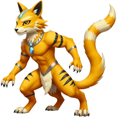 Vernid-Lombax-Koraidon-Renamon-Zeraora-Bastet-Fakémon-Digimon-fusion-creature, full body emoji