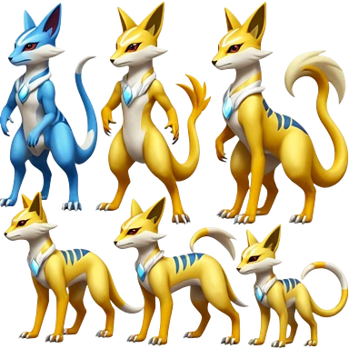 Latias-Vernid-Lombax-Koraidon-Renamon-Zeraora-Bastet-Fakémon-hybrid-fusion-creature, full body emoji