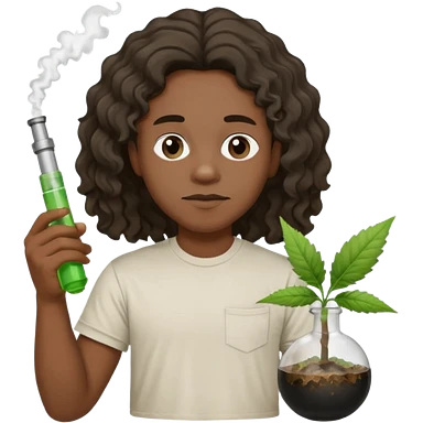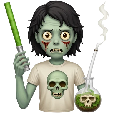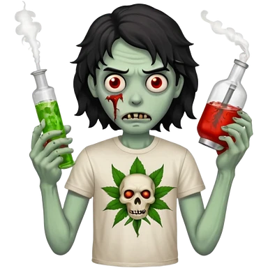 black wavy haired zombie getting stoned with weed t shirt and bong on his hand emoji