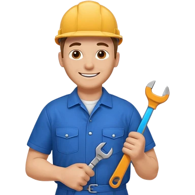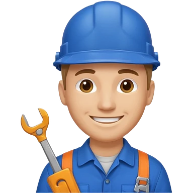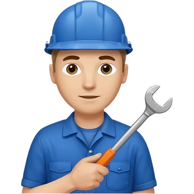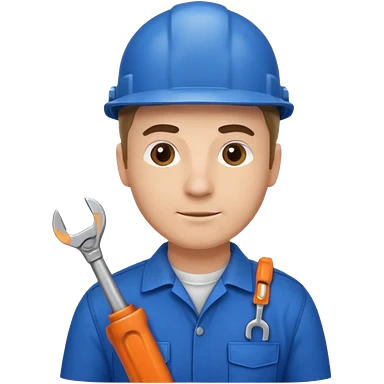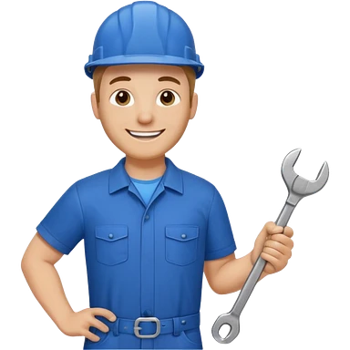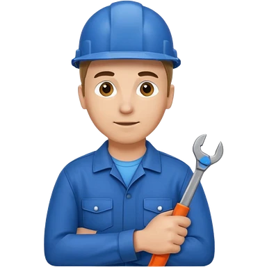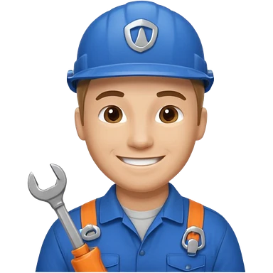 a dark-haired guy with glasses and a beard in a repairman's suit emoji