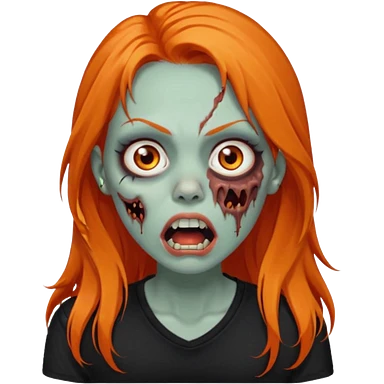 Faça uma zumbi feminina com cabelos médios e laranja, deve estar vestindo uma camisa preta e ter seus olhos castanhos escuro, não esqueça de colocar a sombrancelha da cor do cabelo emoji
