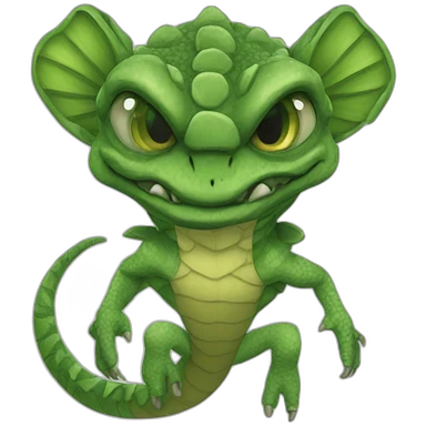 Reptilian alien head, green scales, yellow eyes, cartoon emoji, no background emoji