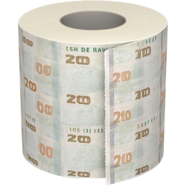 Torre de rollos de papel higiénico con billetes de cien impreso emoji
