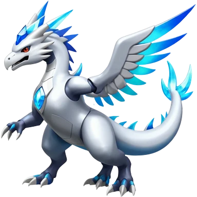 Shiny Glossy Alloy Shimmering Reshiram-Zekrom-Latios-Kyurem-Latios-hybrid-fusion, full body emoji
