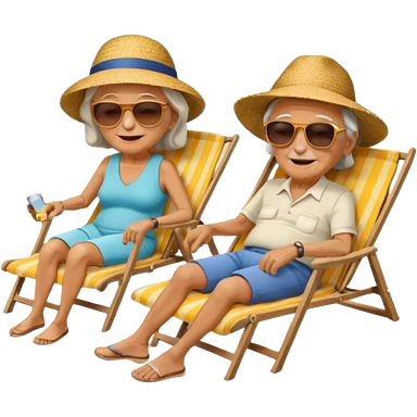 an emoji that shows elderly one woman and one man, both are retired and are lying in sun-chairs at the beach to recover from retiring-stress emoji
