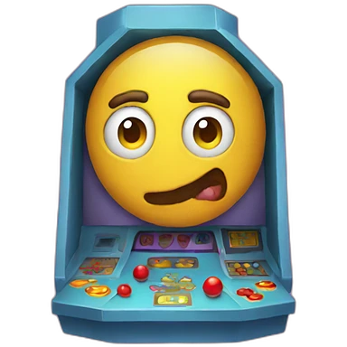 An icon featuring a retro arcade machine with vibrant pixelated graphics on the screen, showcasing classic gameplay. Bright neon lights surround the arcade cabinet, evoking nostalgia for the golden age of gaming. transparent background, the design symbolizes the fun and thrill of arcade games emoji
